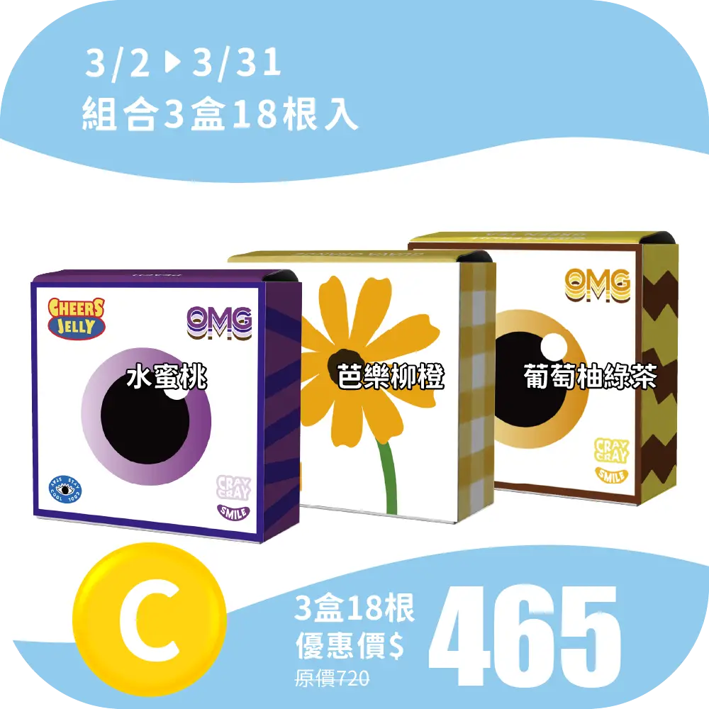 CHEERSJELLY【春日時光 C】舉杯低卡蒟蒻凍(3盒共18根入)水蜜桃 芭樂柳橙 葡萄柚綠茶