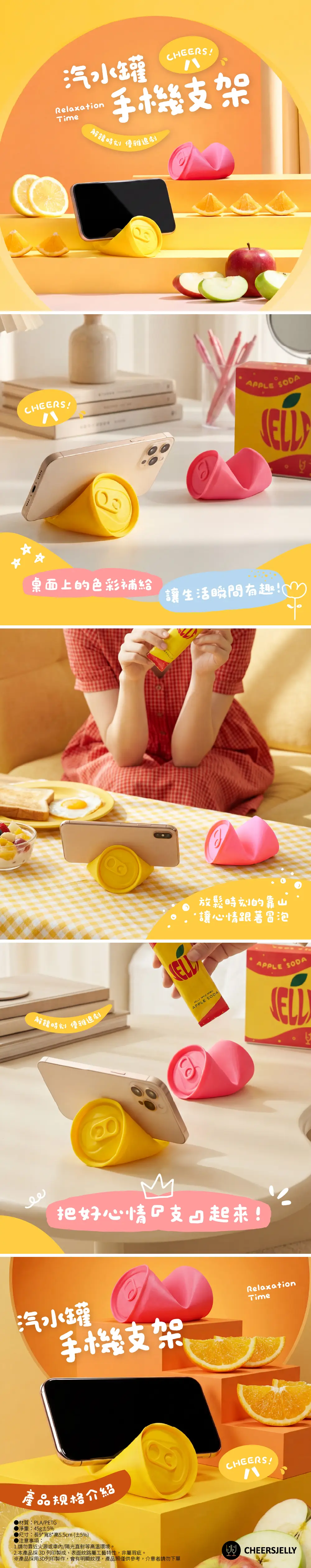 ※CHEERS! 汽水罐手機支架產品採用3D列印製作,會有明顯紋理,產品照僅供參考,介意者請勿下單。