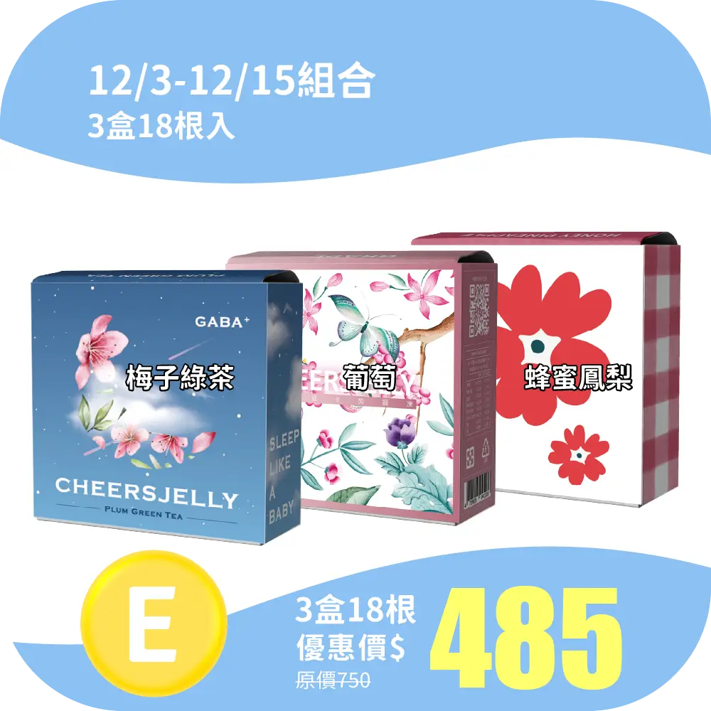 CHEERSJELLY 【舉杯甜甜 E】舉杯低卡蒟蒻凍(3盒共18根入)梅子綠茶 葡萄 蜂蜜鳳梨