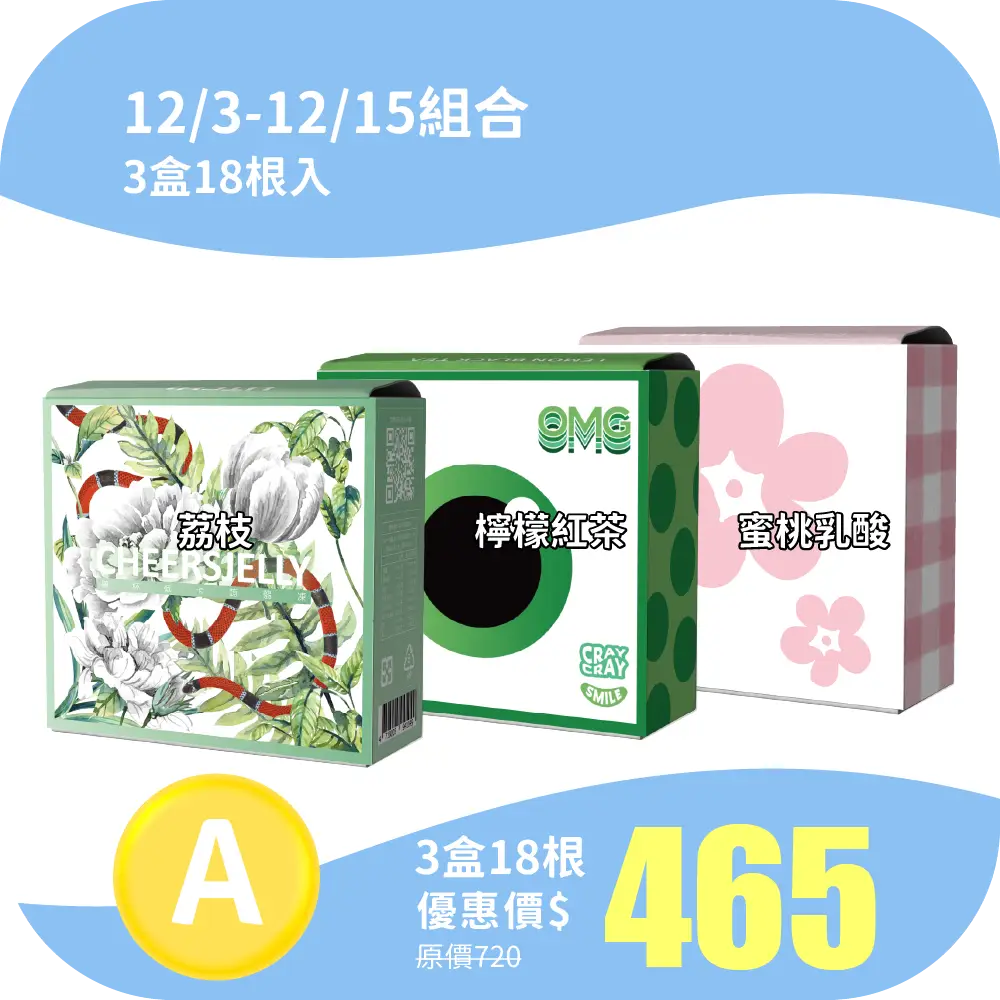 CHEERSJELLY 【舉杯甜甜 A】舉杯低卡蒟蒻凍(3盒共18根入)荔枝 檸檬紅茶 蜜桃乳酸