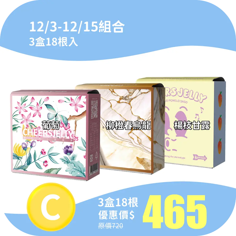CHEERSJELLY 【舉杯甜甜 C】舉杯低卡蒟蒻凍(3盒共18根入)葡萄 柳橙春烏龍 楊枝甘露