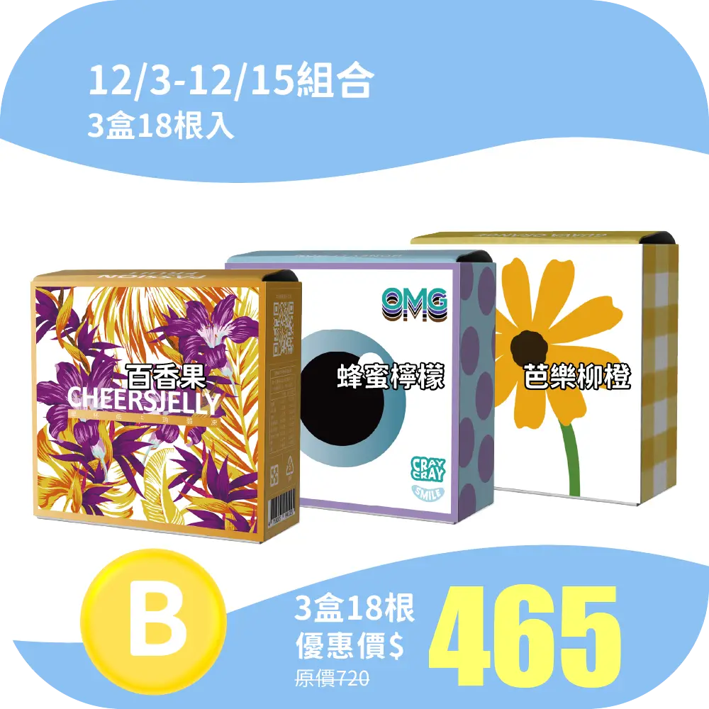CHEERSJELLY 【舉杯甜甜 B】舉杯低卡蒟蒻凍(3盒共18根入)百香果 蜂蜜檸檬 芭樂柳橙